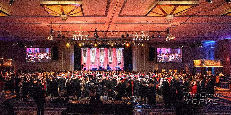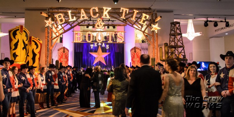 Is an Inaugural Ball sponsored by The Texas State Society. CrewWORKS was contracted by Ward and Ames of Houston TX to provide 5 stage venues. Over 60 crew to build & strike. 16 for event stage management and deck crew for marathon 20+ hour call. This was our 3rd BT&B (2000, 2004, 2012).